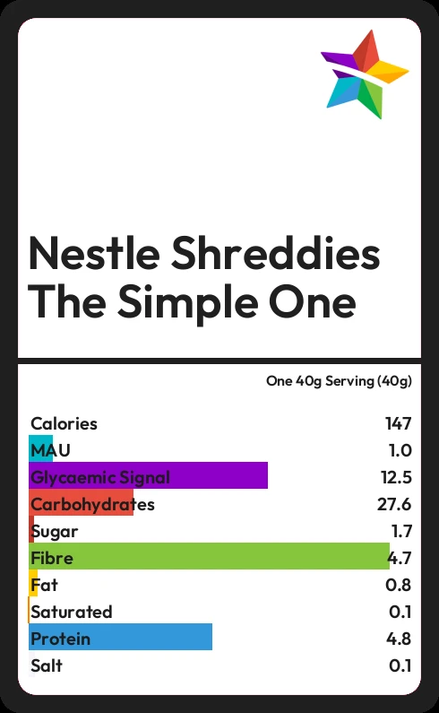 Nestle Shreddies The Simple One contains 1.7g sugar in one 40g Serving (40g)