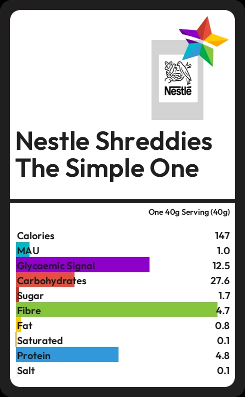 Nestle Shreddies The Simple One contains 1.7g sugar in one 40g Serving (40g)