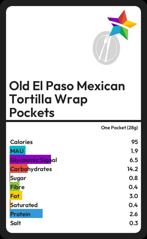 Old El Paso Mexican Tortilla Wrap Pockets contains 0.8g sugar in one Pocket (28g)