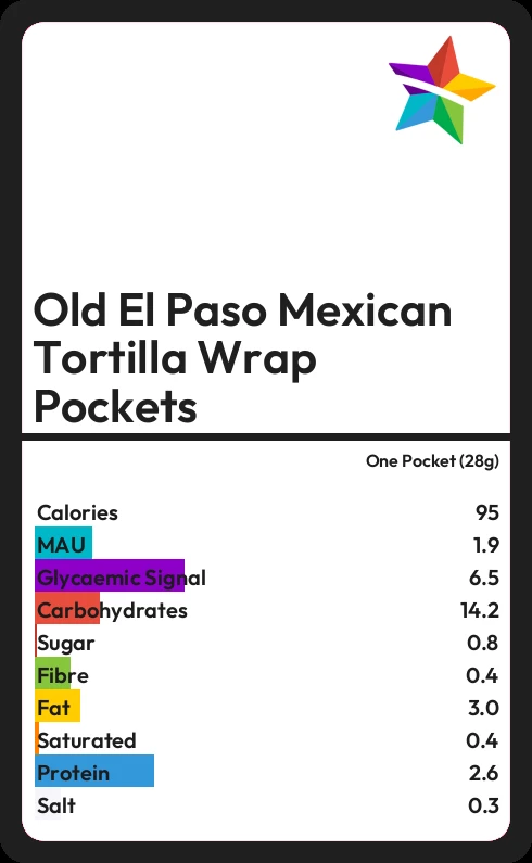 Old El Paso Mexican Tortilla Wrap Pockets contains 0.8g sugar in one Pocket (28g)