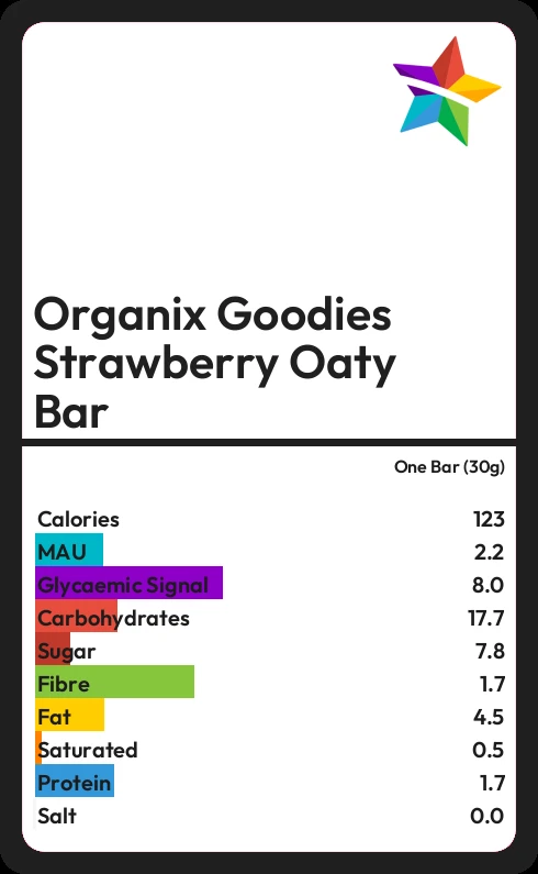 Organix Goodies Strawberry Oaty Bar contains 123 calories in one Bar (30g).