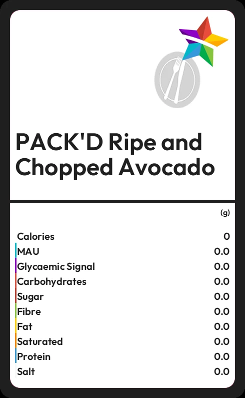 PACK'D Ripe and Chopped Avocado contains 0.7g sugar in 100g