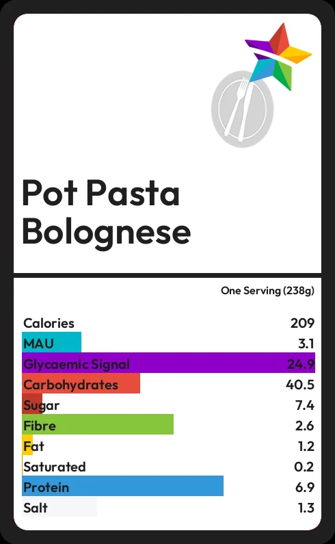 Pot Pasta Bolognese contains 7.4g sugar in one Serving (238g) - that is around 2 cubes of sugar.