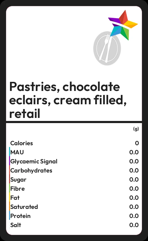 How much fat in Pastries, chocolate eclairs, cream filled, retail?