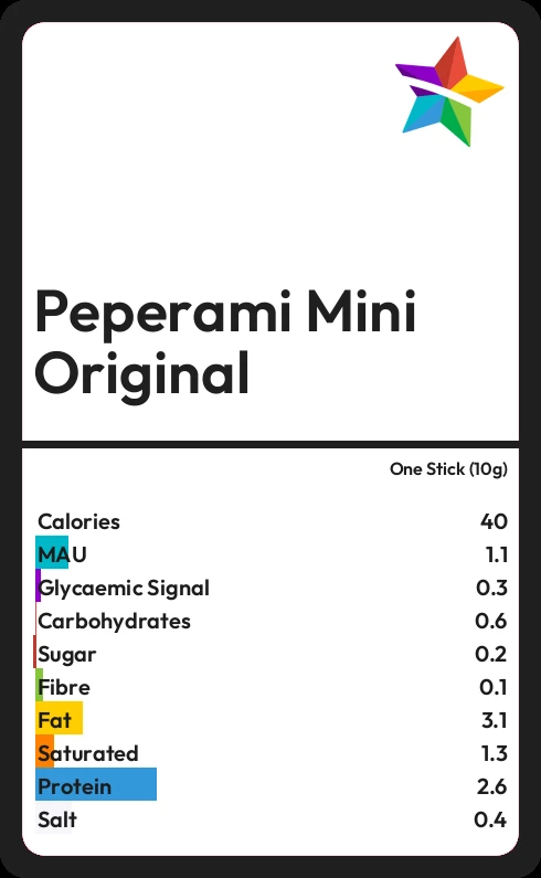 Peperami Mini Original contains 0.2g sugar in one Stick (10g)