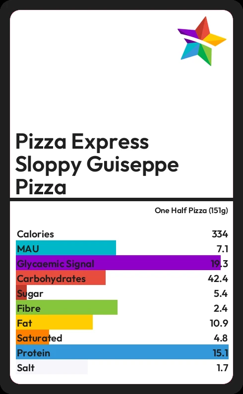 Pizza Express Sloppy Guiseppe Pizza contains 333.7 calories in one Half Pizza (151g).
