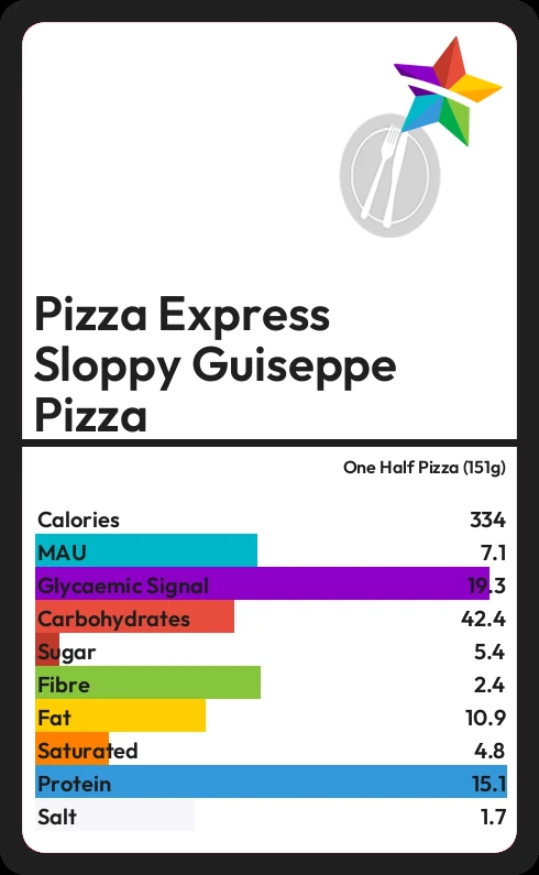 Pizza Express Sloppy Guiseppe Pizza contains 333.7 calories in one Half Pizza (151g).