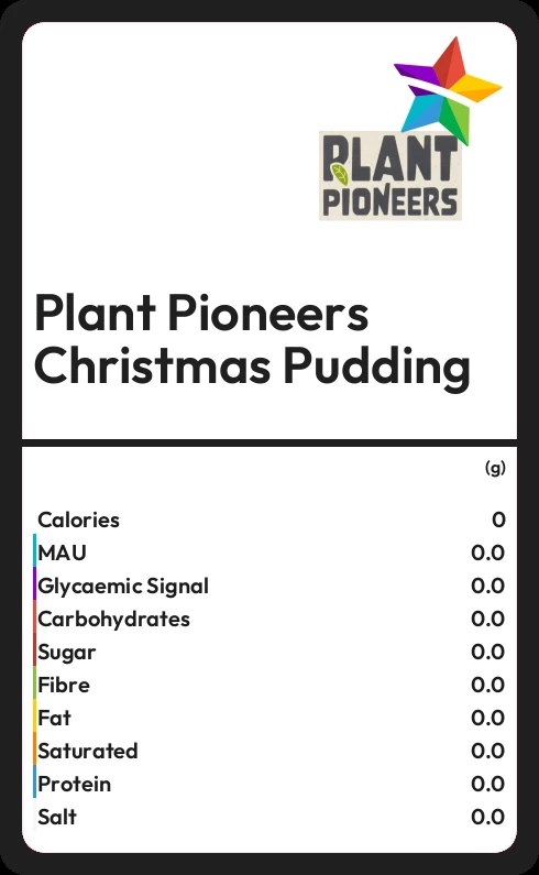 Plant Pioneers Christmas Pudding contains 325 calories in 100g.
