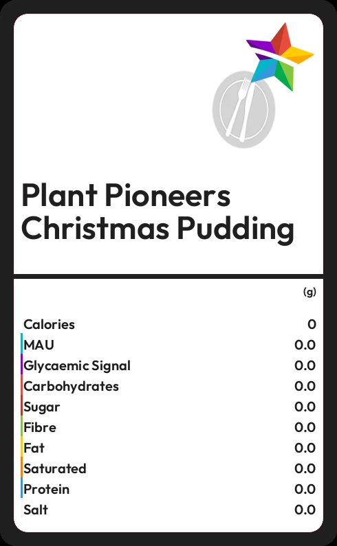 Plant Pioneers Christmas Pudding contains 325 calories in 100g.