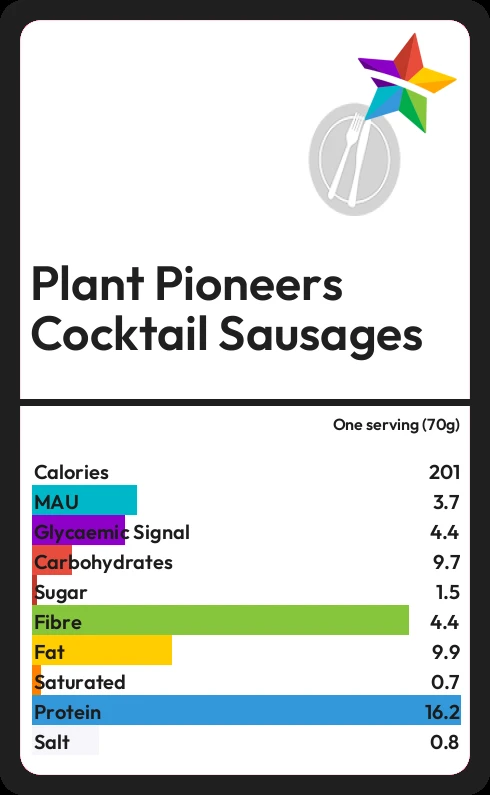Plant Pioneers Cocktail Sausages contains 1.5g sugar in one serving (70g)