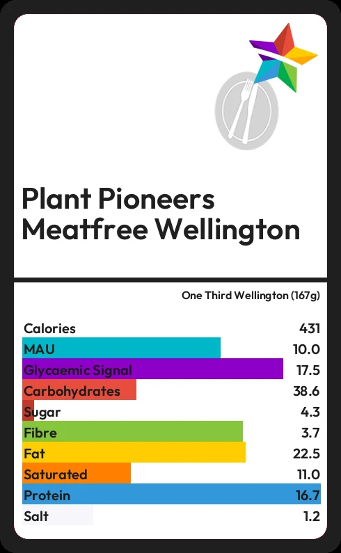 Plant Pioneers Meatfree Wellington contains 430.9 calories in one Third Wellington (167g).