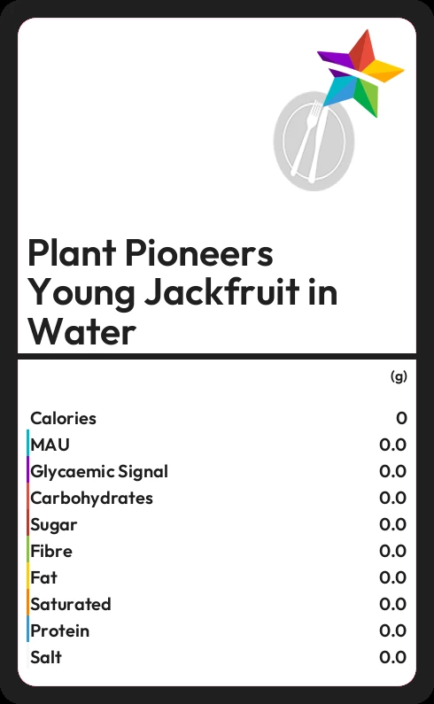 Plant Pioneers Young Jackfruit in Water contains 0.5g sugar in 100g
