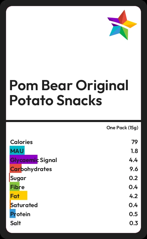 Pom Bear Original Potato Snacks contains 79.2 calories in one Pack (15g).