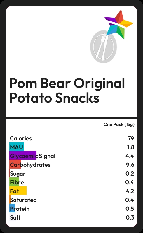 Pom Bear Original Potato Snacks contains 79.2 calories in one Pack (15g).
