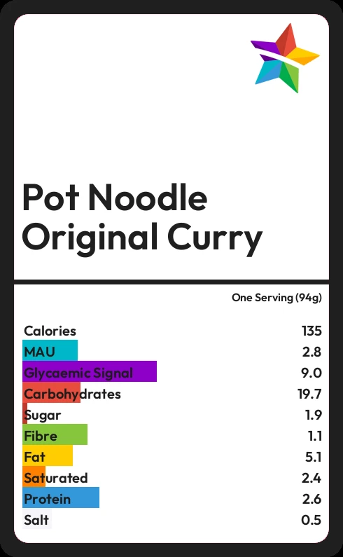 Pot Noodle Original Curry contains 1.9g sugar in one Serving (94g)