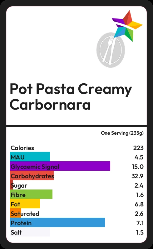 Pot Pasta Creamy Carbornara contains 2.4g sugar in one Serving (235g) - that is around 1 cube of sugar.