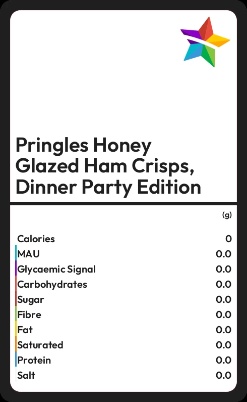 Pringles Honey Glazed Ham Crisps, Dinner Party Edition contains 526 calories in 100g.