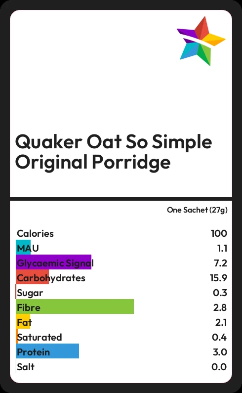 Quaker Oat So Simple Original Porridge contains 100.4 calories in one Sachet (27g).