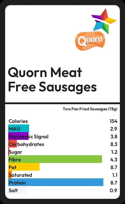 Quorn Meat Free Sausages contains 1.2g sugar in two Pan Fried Sausages (78g)
