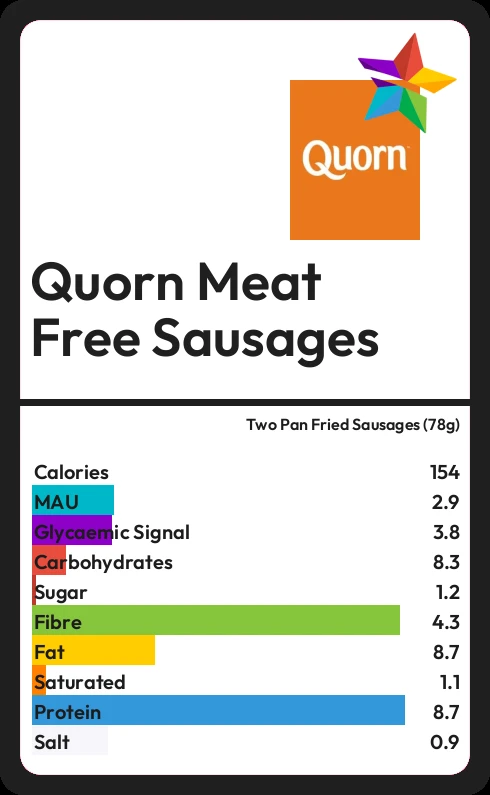 Quorn Meat Free Sausages contains 1.2g sugar in two Pan Fried Sausages (78g)