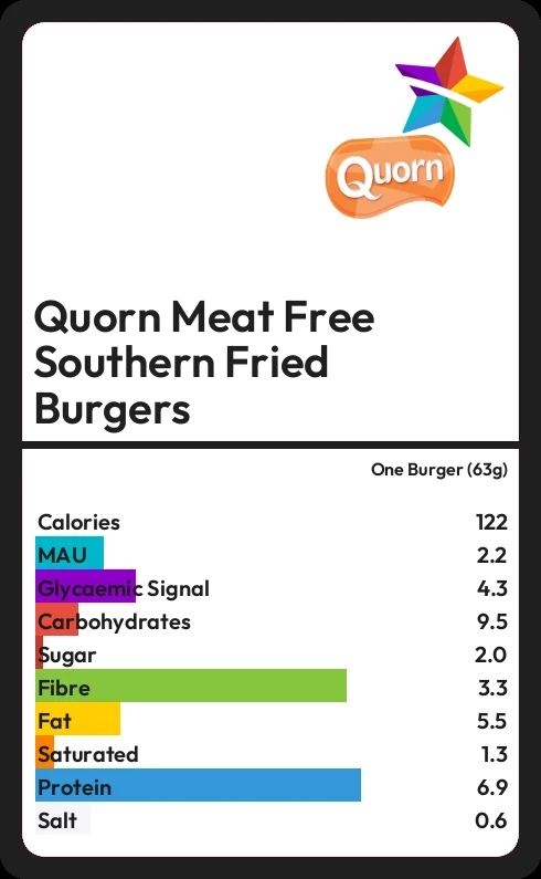 Quorn Meat Free Southern Fried Burgers contains 122.2 calories in one Burger (63g).