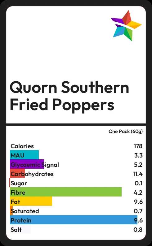 Quorn Southern Fried Poppers contains 177.6 calories in one Pack (60g).