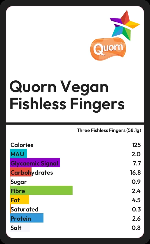 Quorn Vegan Fishless Fingers contains 0.9g sugar in three Fishless Fingers (58.1g)