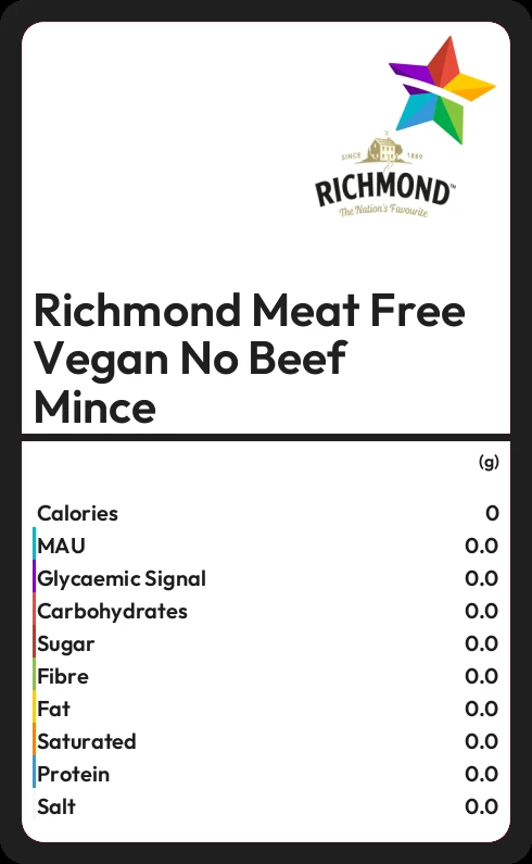 Richmond Meat Free Vegan No Beef Mince contains 0.1g sugar in 100g