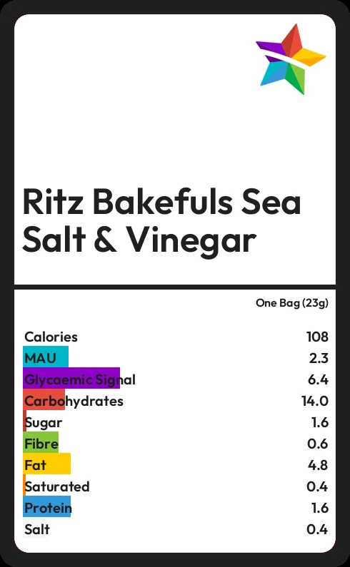 Ritz Bakefuls Sea Salt & Vinegar contains 1.6g sugar in one Bag (23g)