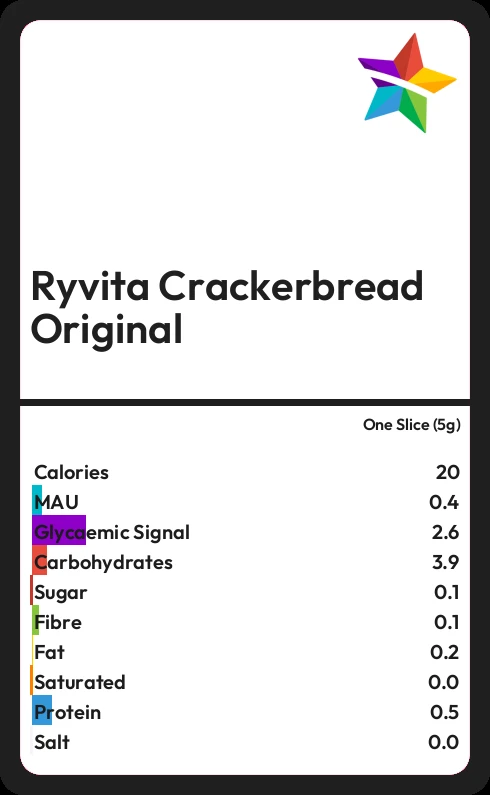 Ryvita Crackerbread Original contains 0.1g sugar in one Slice (5g)
