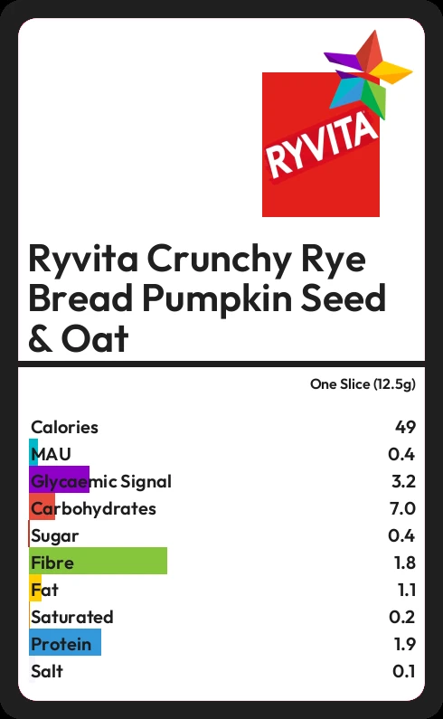 Ryvita Crunchy Rye Bread Pumpkin Seed & Oat contains 0.4g sugar in one Slice (12.5g)