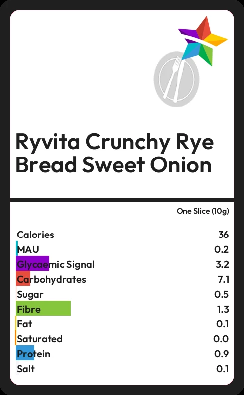 Ryvita Crunchy Rye Bread Sweet Onion contains 0.5g sugar in one Slice (10g)