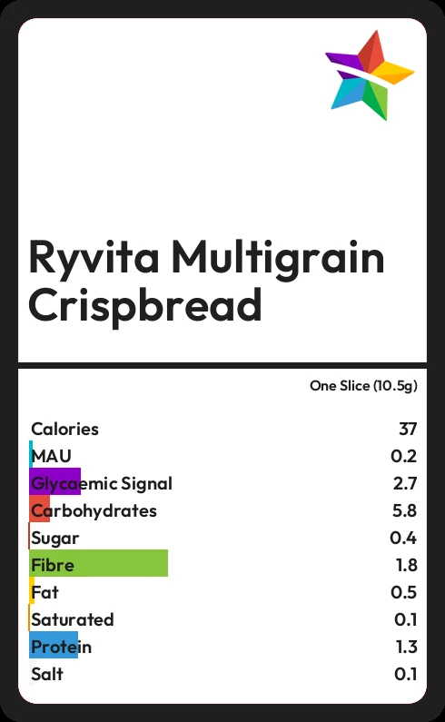 Ryvita Multigrain Crispbread contains 0.4g sugar in one Slice (10.5g)