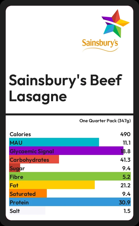 How much sugar in Sainsbury's Beef Lasagne?