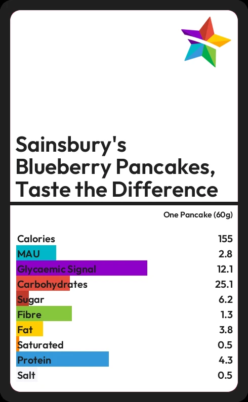 Sainsbury's Blueberry Pancakes, Taste the Difference contains 155.4 calories in one Pancake (60g).