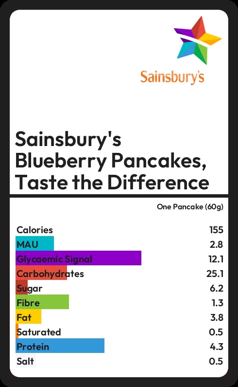 Sainsbury's Blueberry Pancakes, Taste the Difference contains 155.4 calories in one Pancake (60g).