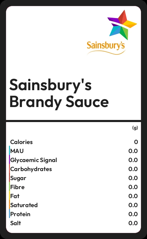 Sainsbury's Brandy Sauce contains 194 calories in 100g.