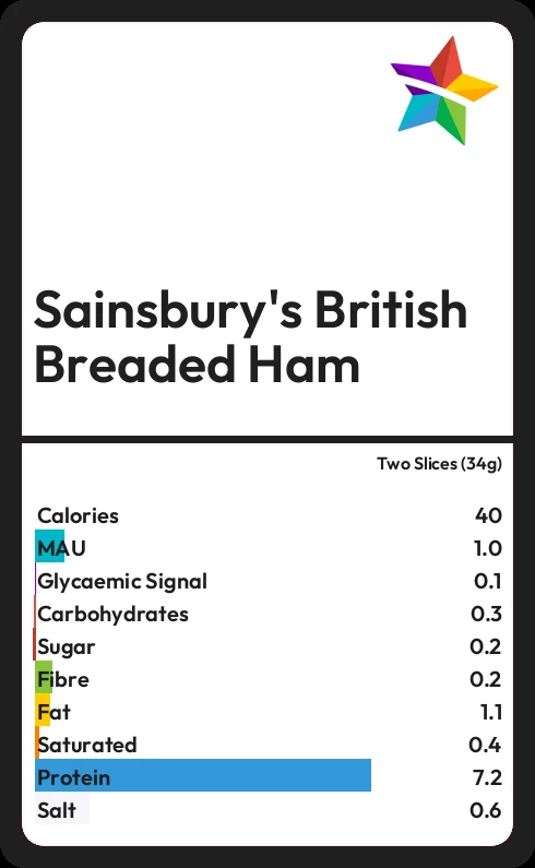 Sainsbury's British Breaded Ham contains 0.2g sugar in two Slices (34g)