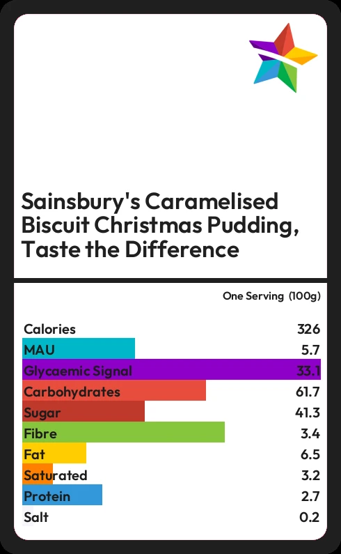 Sainsbury's Caramelised Biscuit Christmas Pudding, Taste the Difference contains 41.3g sugar in one Serving (100g) - that is around 10 cubes of sugar.