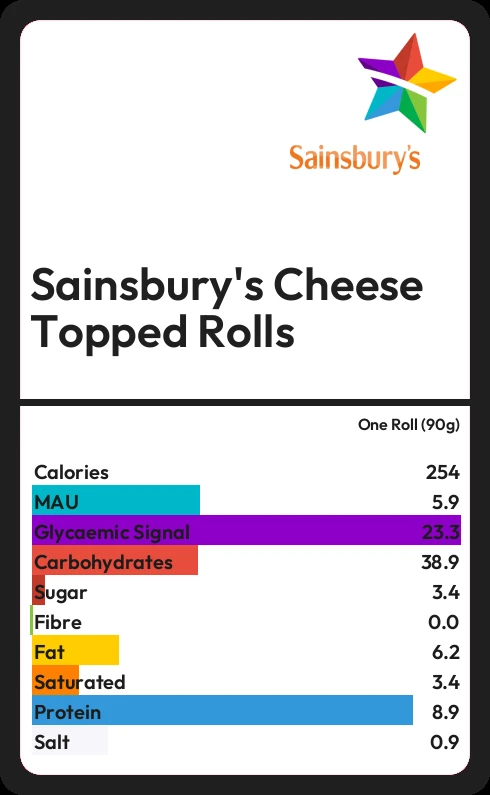 Sainsbury's Cheese Topped Rolls contains 253.8 calories in one Roll (90g).