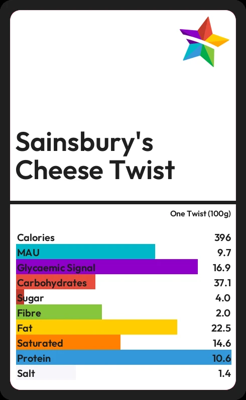 Sainsbury's Cheese Twist contains 396 calories in one Twist (100g).