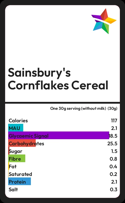 Sainsbury's Cornflakes Cereal contains 116.7 calories in one 30g serving (without milk)  (30g).