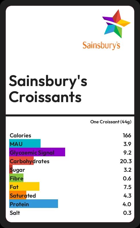 Sainsbury's Croissants contains 165.9 calories in one Croissant (44g).