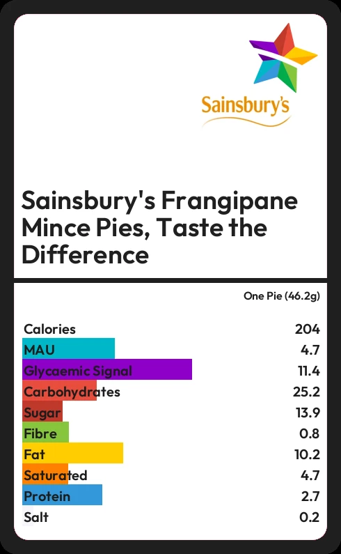 How much sugar in Sainsbury's Frangipane Mince Pies, Taste the Difference?