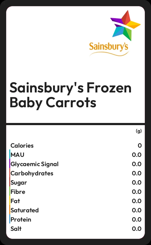 How much fat in Sainsbury's Frozen Baby Carrots?