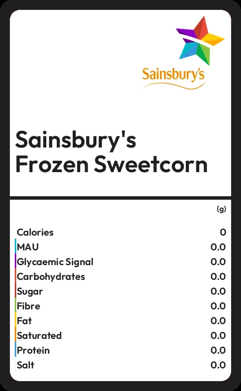 How much fat in Sainsbury's Frozen Sweetcorn?