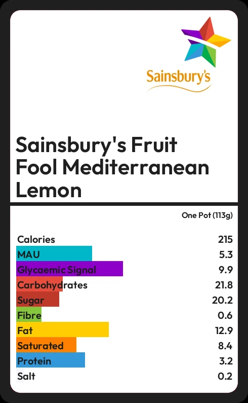 How much fat in Sainsbury's Fruit Fool Mediterranean Lemon?