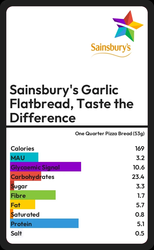 How much sugar in Sainsbury's Garlic Flatbread, Taste the Difference?