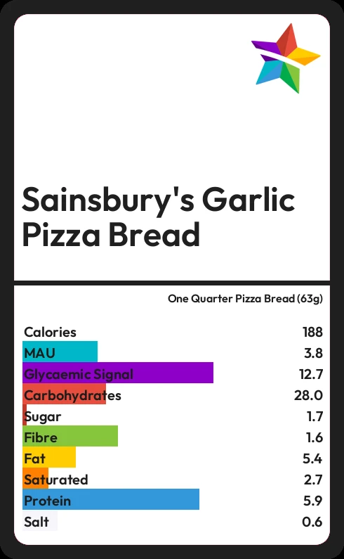 Sainsbury's Garlic Pizza Bread contains 1.7g sugar in one Quarter Pizza Bread (63g)