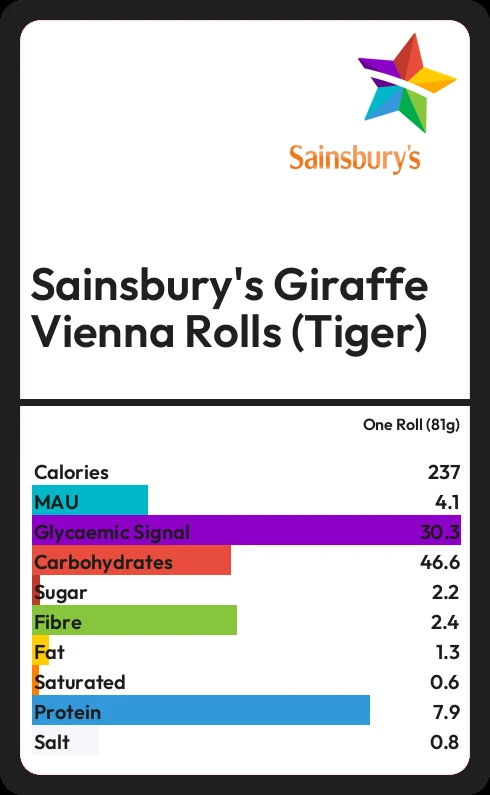 Sainsbury's Giraffe Vienna Rolls (Tiger) contains 237.3 calories in one Roll (81g).